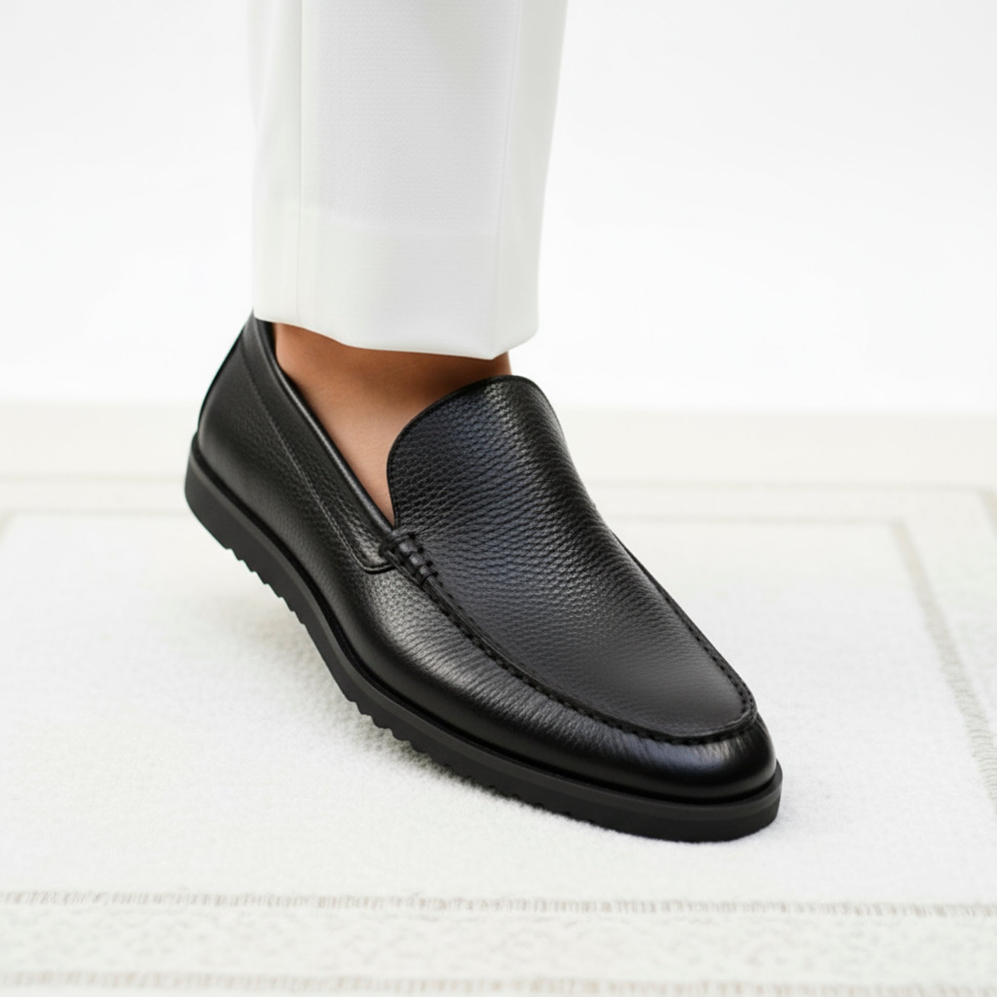 Black Piana Leather Loafers | Wrinkle-Free Premium Grain Leather