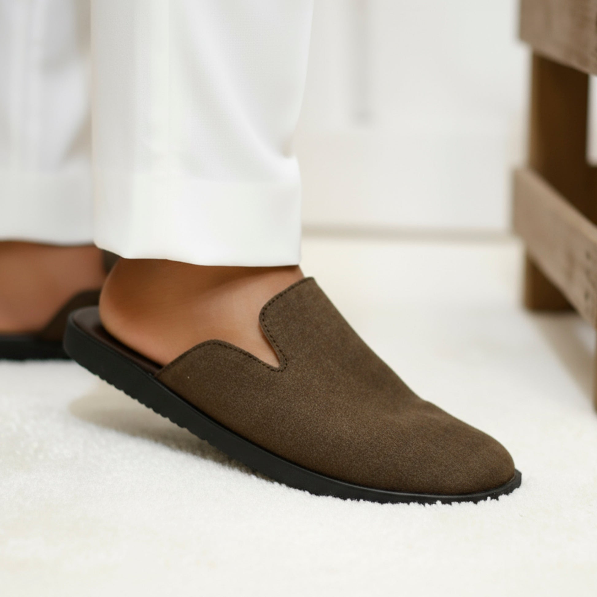 Dark Brown Suede Medicated Mules for Men | Slip-On | Light Weight Backless Mules for Men | Medicated Slippers for Men