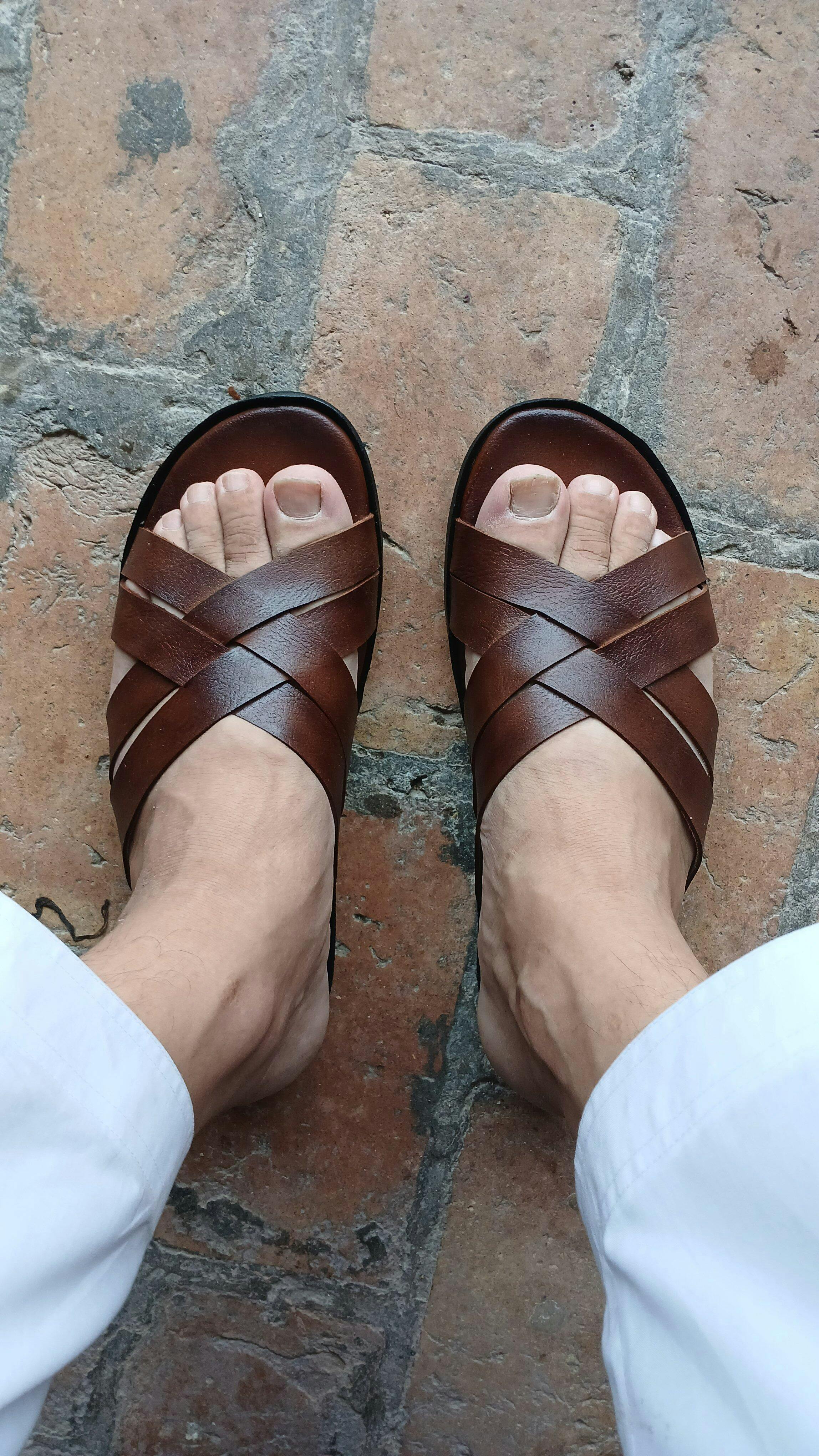- 100% Handmade Leather Slippers , Dual Tone - Brown Shaded .